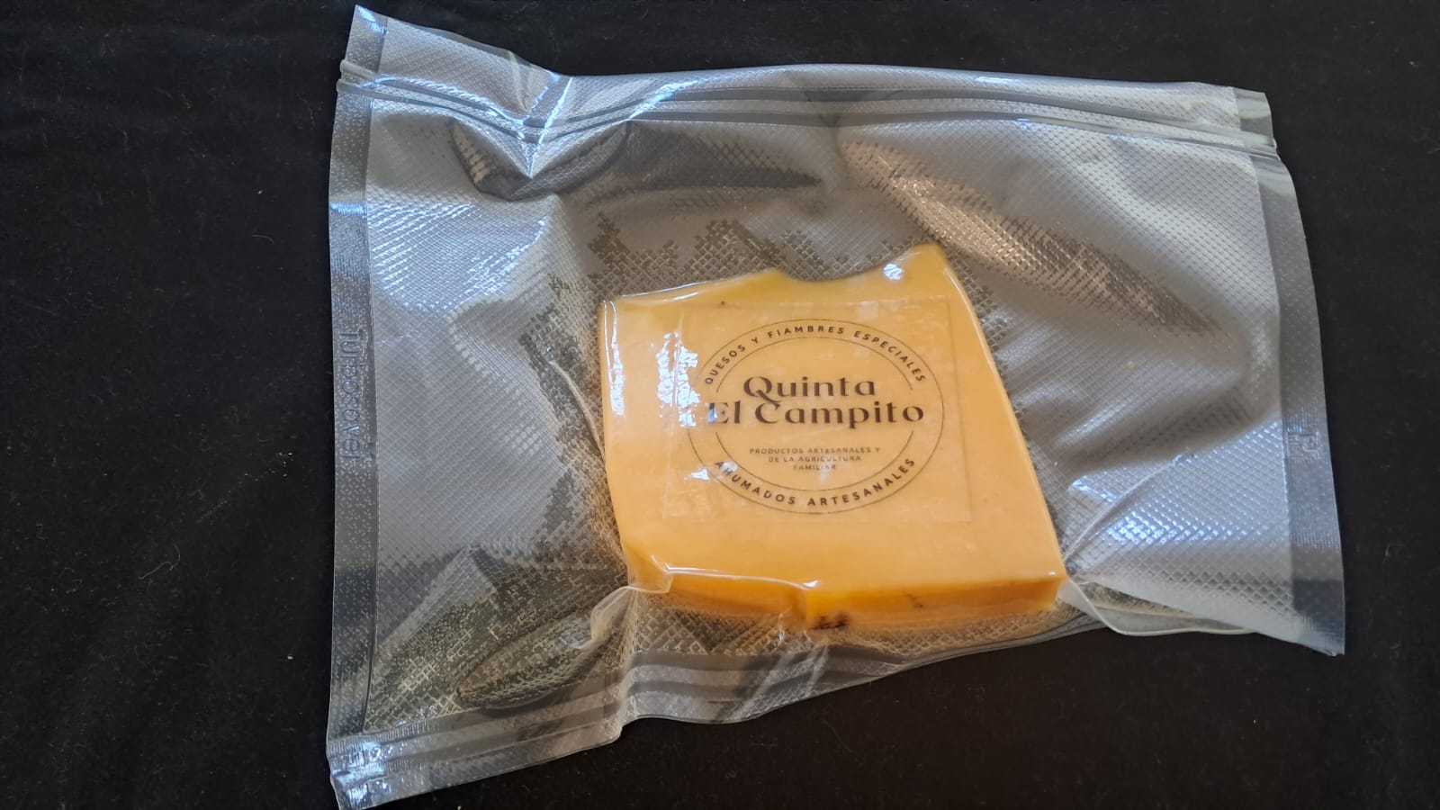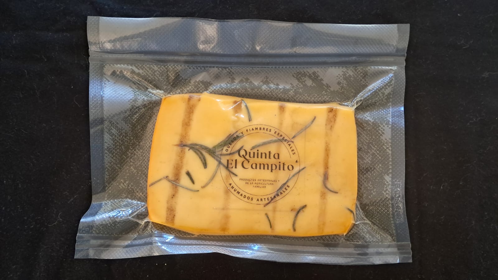 Queso sardo ahumado, Solomillo Casero ahumado, Queso Pepato fresco ahumado. Envasada al vacío. Aproximadamente 400 gramos