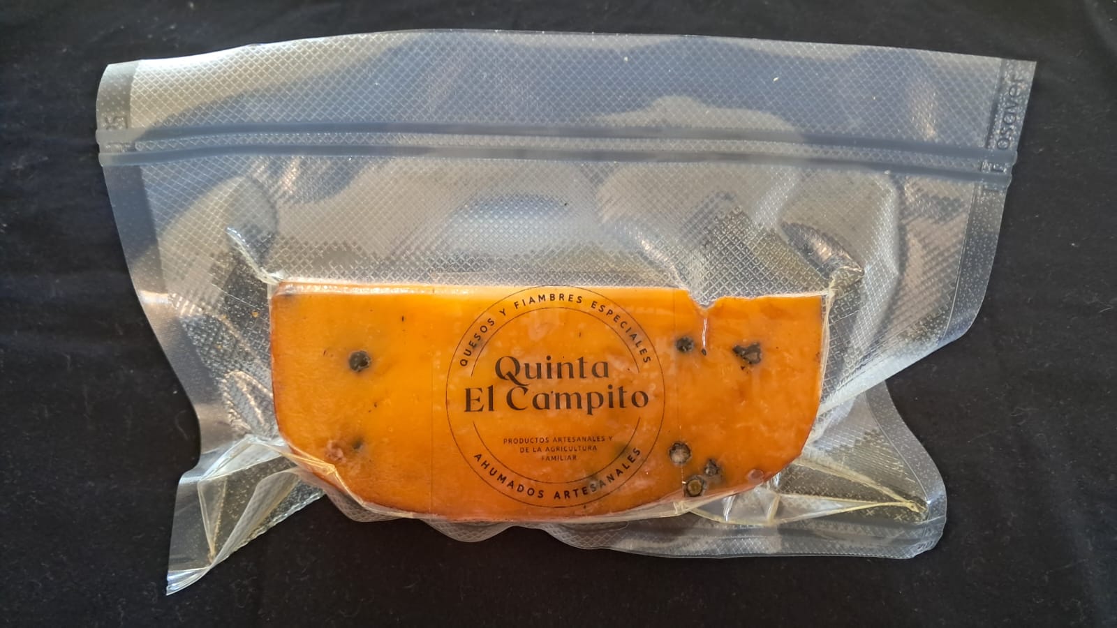 Queso tipo Sardo, Pepato y Tybo de la Agricultura Familiar, especiados con Pimienta Rosa de Aguaribay o Pimienta Negra, y ahumados artesanalmente. Presentación Envasados al vacío.